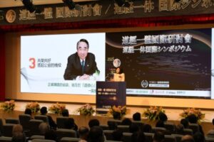 本国際シンポジウムは「三方よしと持続可能な企業・団体経営について考える」をテーマに掲げ、日本と台湾の企業経営者・幹部をはじめとする約250名が参加。当財団の創立者・廣池千九郎(法学博士)が提唱した、道徳と経済の調和をめざす「道経一体」「三方よし」の理念と実践事例について、国際的な視点から議論する場となりました。