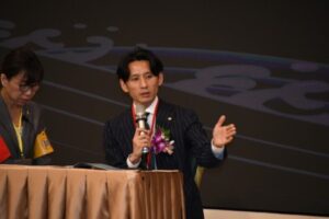パネリストによる発表では、台湾永光化学工業㈱の経営を24年以上にわたり担い、環境配慮型経営や産学連携の推進に尽力してきた陳偉望社長、創業130年を超える日本の老舗繊維メーカー・長谷虎紡績㈱の長谷享治代表取締役社長、台湾経済界を代表するエバーグリーングループの創業者・張榮發氏の志を継ぎ、長年にわたり文化・教育・公益事業を推進してきた㈶張榮發基金会の鍾德美執行長が登壇。ディスカッションでは、「道経一体」「三方よし」の理念に基づく経営のあり方や、持続可能な企業づくりへの取り組みについて活発な議論が行われました。最後に、「道経一体」「三方よし」の理念と実践を学ぶ経営者の全国組織である(一社)日本道経会の生田泰宏会長が閉会挨拶を行い、本シンポジウムを結びました。