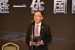 続いて、日本企業の台北駐在員を経て同地で独立し、再来年(2029年)創業50周年を迎える陶磁器等の専門商社・皇居企業㈱の久志本一彌会長(麗澤大学名誉博士)による基調講演が行われました。