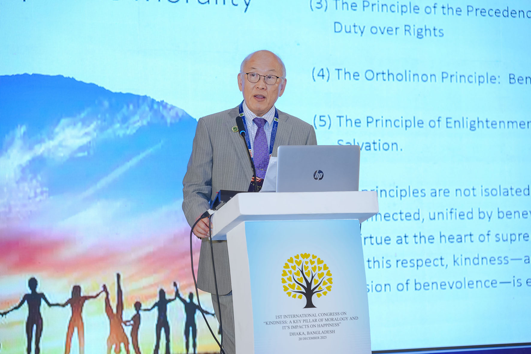 令和7年12月20日、バングラデシュの首都ダッカにて、NGO「ショマン財団」(※) 主催による国際会議“First International Congress on Kindness: A Key Pillar of Moralogy and Its Impacts on Happiness”が開催されました。