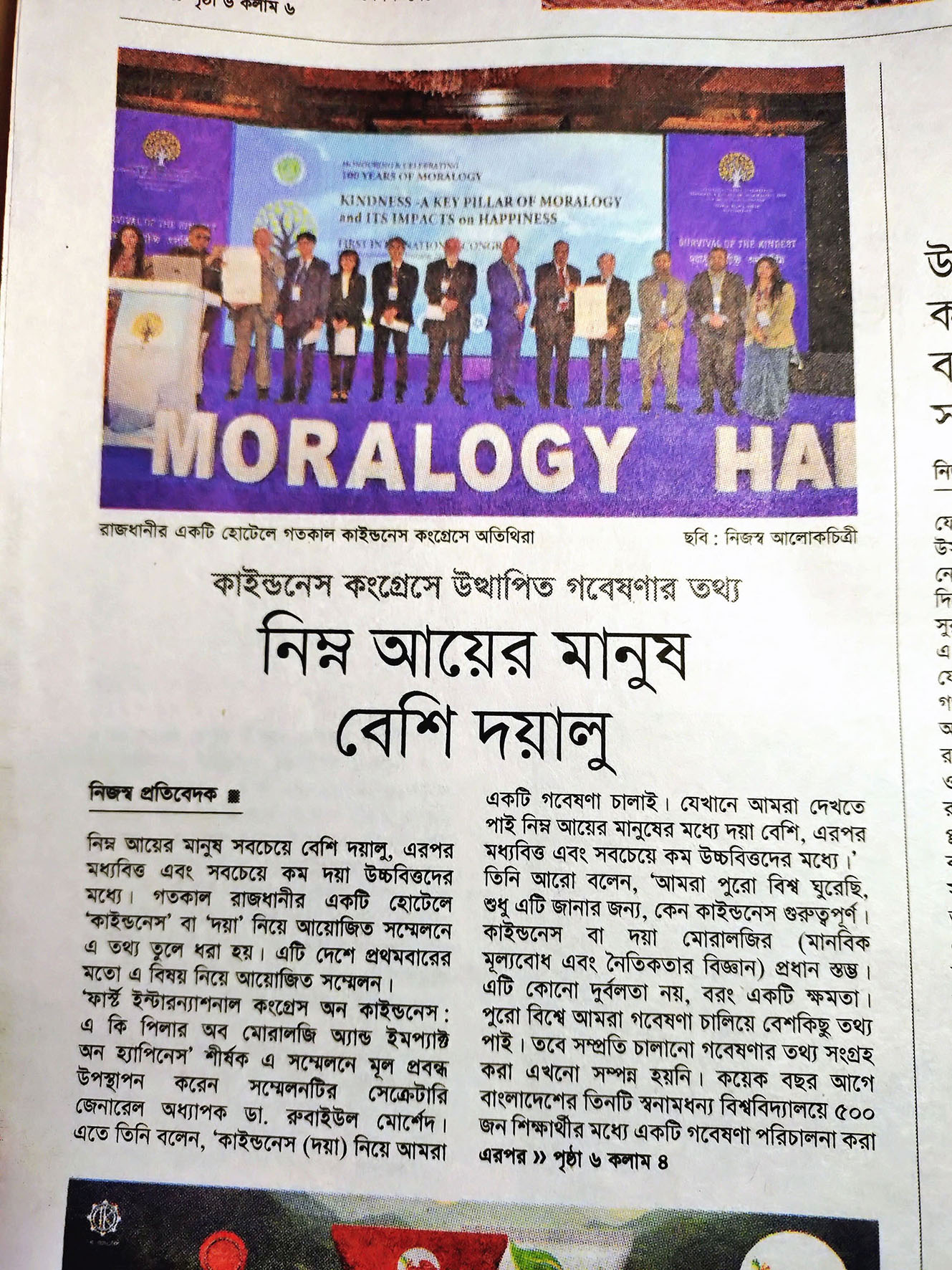 「ショマン財団」主催の国際会議“First International Congress on Kindness: A Key Pillar of Moralogy and Its Impacts on Happiness”がダッカで開催